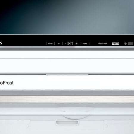 Siemens iQ500 GS54NUWDV. Nettocapaciteit vriezer: 328 l, Klimaatklasse: SN-T, Vriescapaciteit: 22 kg/24u, Bewaartijd bij stroomuitval: 25 uur, Geluidsniveau: 38 dB, Aantal sterren: 4*, No Frost system. Deurscharnieren: Rechts. Soort lamp: LED. Energie-efficiëntieklasse: D, Jaarlijks energieverbruik: 212 kWu. Kleur van het product: Wit