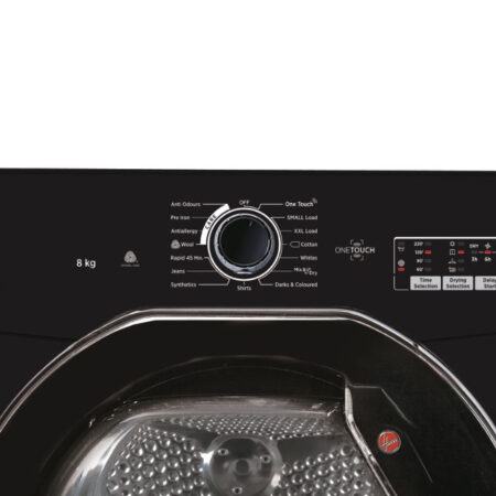Hoover HLEC8LGB-80, Vrijstaand, Voorbelading, Condensatie, Zwart, Knoppen, Draaiknop, Links