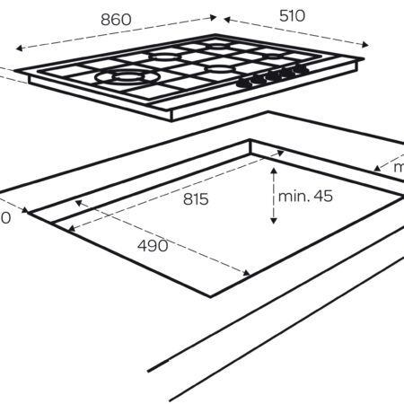 1 x 3.6kW, 1 x 3kW, 1 x 1kW, 2 1.75kW, 860 x 510 mm