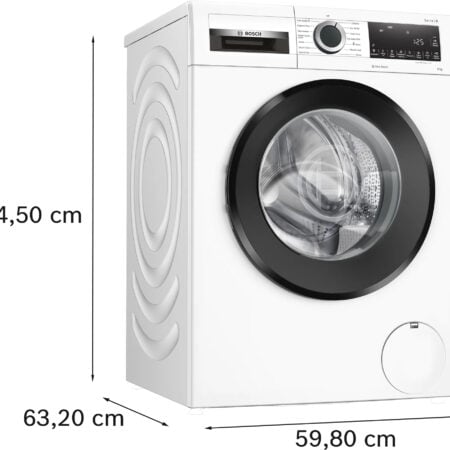 Bosch Serie 6 WGG24400GB. Type lader: Voorbelading. Nominale capaciteit: 9 kg, Centrifuge-droger klasse: B, Geluidsniveau bij centrifugeren: 71 dB, Maximale centrifugesnelheid: 1400 RPM. Kleur van het product: Wit. Breedte: 598 mm, Diepte: 590 mm, Hoogte: 848 mm. Energie-efficiëntieklasse: A