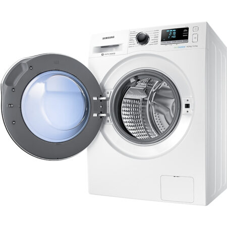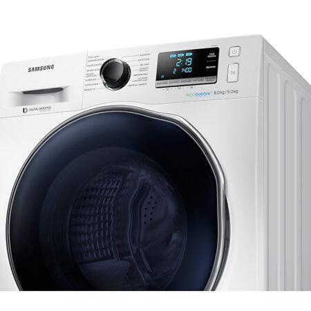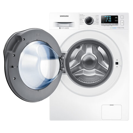 Samsung WD80J6A10AW. Type lader: Voorbelading, Apparaatplaatsing: Vrijstaand, Kleur van het product: Wit. Droogcapciteit: 5 kg, Maximale centrifugesnelheid: 1400 RPM, Centrifuge-droger klasse: A. Water verbruik wassen: 88 l, Energie-efficiëntieschaal: A tot G, Energieverbruik wassen: 5,44 kWu. Diepte: 600 mm, Breedte: 600 mm, Hoogte: 850 mm. Wasklasse: A, Jaarlijkse energieverbruik wassen: 1088 kWu, Jaarlijks waterverbruik wassen: 17600 l