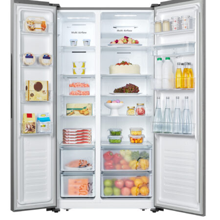 Fridgemaster MS91520ES. Apparaatplaatsing: Vrijstaand, Productontwerp: Amerikaanse deur, Kleur van het product: Zilver. Totale nettocapaciteit: 519 l, Klimaatklasse: N-ST, Geluidsemissieklasse: D. Nettocapaciteit koelkast: 334 l, Soort lamp: LED. Nettocapaciteit vriezer: 185 l, Vriezer positie: Ernaast, Vriescapaciteit: 11 kg/24u. Snoerlengte: 2 m