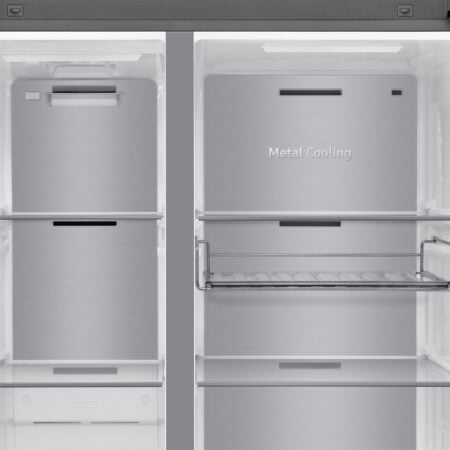 Zorg dat de binnenkant van de koelkast de juiste temperatuur heeft, zodat etenswaren vers blijven, ook als je de koelkastdeur vaak opent. Het Metal Cooling™-systeem is mooi én functioneel: de afvoer op de achterwand zorgt ervoor dat de kou in de lucht behouden blijft, helpt om warmteverlies te herstellen en is gemakkelijk te reinigen.