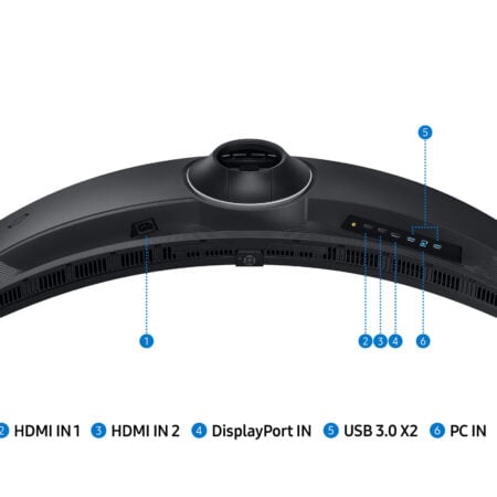 Het 49″ scherm met kromming van 1000R omringt je voor een ongekend meeslepende ervaring met een beeldverhouding van 32:9.