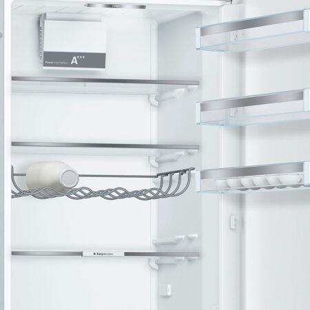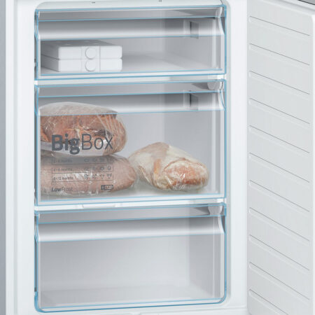 Bosch Serie 6 KGE39AICA. Totale nettocapaciteit: 343 l. Deurscharnieren: Rechts. Klimaatklasse: SN-T, Geluidsniveau: 38 dB. Nettocapaciteit koelkast: 249 l, Koelkast binnenverlichting, Aantal planken koelkast: 5, Aantal groente lades: 2. Nettocapaciteit vriezer: 94 l, Vriescapaciteit: 14 kg/24u. Vers zone compartiment. Energie-efficiëntieklasse: C, Jaarlijks energieverbruik: 149 kWu. Kleur van het product: Roestvrijstaal