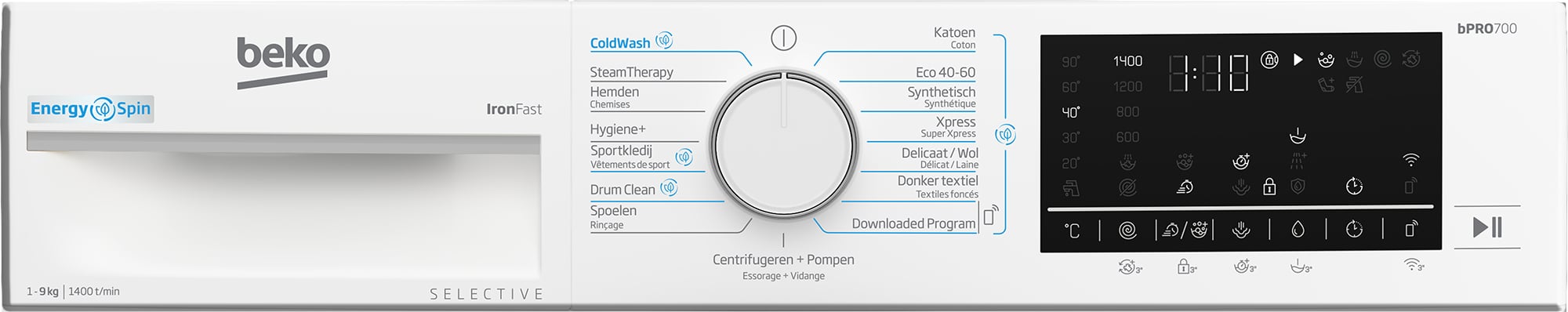 De innovatieve EnergySpin-technologie van Beko geeft een nieuwe invulling aan traditionele was-gewoonten. In plaats van afhankelijk te zijn van warmte om wasmiddel op te lossen en vlekken te verwijderen, geeft EnergySpin het wasmiddel vooraf vrij. Het maakt gebruik van hogere trommelsnelheden bij de start van het wasprogramma, om zo het oplosproces van het wasmiddel te versnellen. Deze unieke trommelbeweging elimineert de noodzaak van overmatige hitte: wat resulteert in een tot 35% lager energieverbruik dan conventionele machines, terwijl de reinigingsprestaties van hoge kwaliteit blijven. Het is dus een overwinning voor uw wasgoed én het milieu!