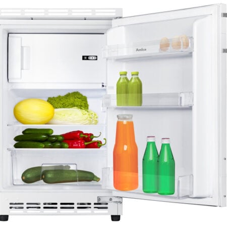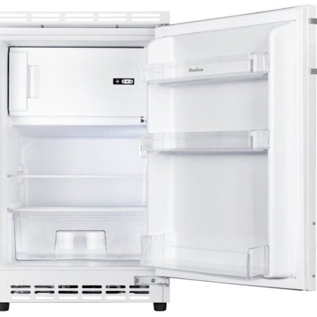 Amica UKSD 361 951. Apparaatplaatsing: Ingebouwd, Kleur van het product: Wit, Deurscharnieren: Rechts. Totale nettocapaciteit: 82 l, Klimaatklasse: ST, Geluidsemissieklasse: C. Nettocapaciteit koelkast: 68 l, Soort lamp: LED. Vriezer positie: Boven, Nettocapaciteit vriezer: 14 l, Vriescapaciteit: 2 kg/24u. Snoerlengte: 2,3 m