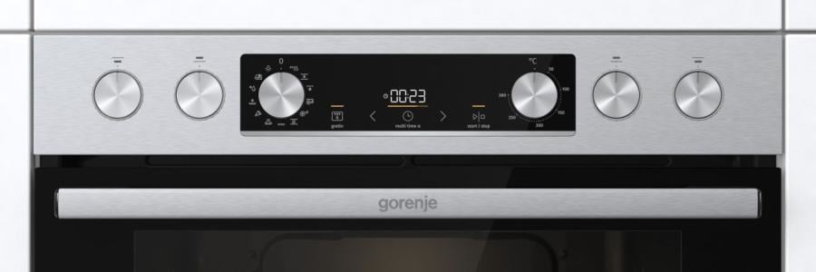 Gorenje Steel Set 4 BCS6737E06X+ECD634X. Type kookplaat: Keramisch, Aantal branders/kookzones: 4 zone(s), Soort materiaal (bovenkant): Glaskeramiek. Soort oven: Elektrische oven, Netto capaciteit oven: 77 l, Kleur oven: Roestvrij staal/Zwart