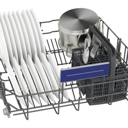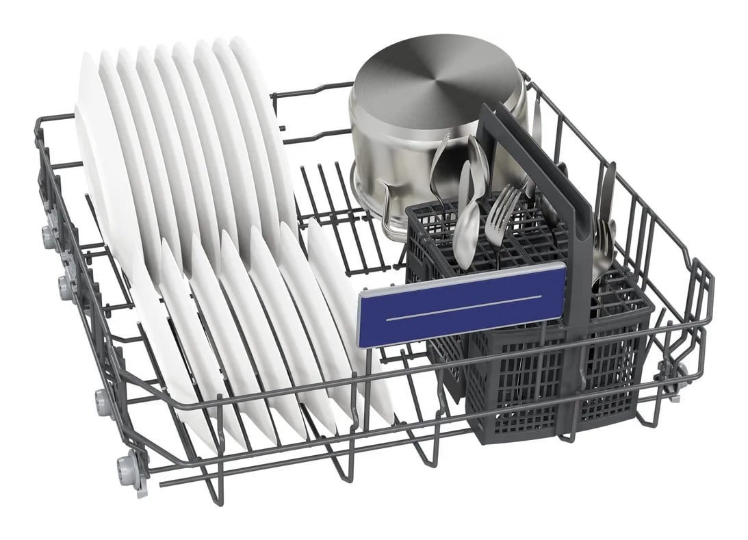 Siemens SX63HX03TE. Apparaatplaatsing: Volledig ingebouwd, Productafmeting: Volledige grootte (60 cm), Kleur bedieningspaneel: Roestvrijstaal. Aantal couverts: 13 couverts, Geluidsemissieklasse: C, Geluidsniveau: 46 dB. Voetenverstelling: 6 cm, Bedieningsapps ondersteund: Home Connect. Energie-efficiëntieklasse: C, Waterconsumptie per cyclus: 9 l, Energieverbruik per 100 cycli: 74 kWu. Breedte: 598 mm, Diepte: 550 mm, Hoogte: 865 mm