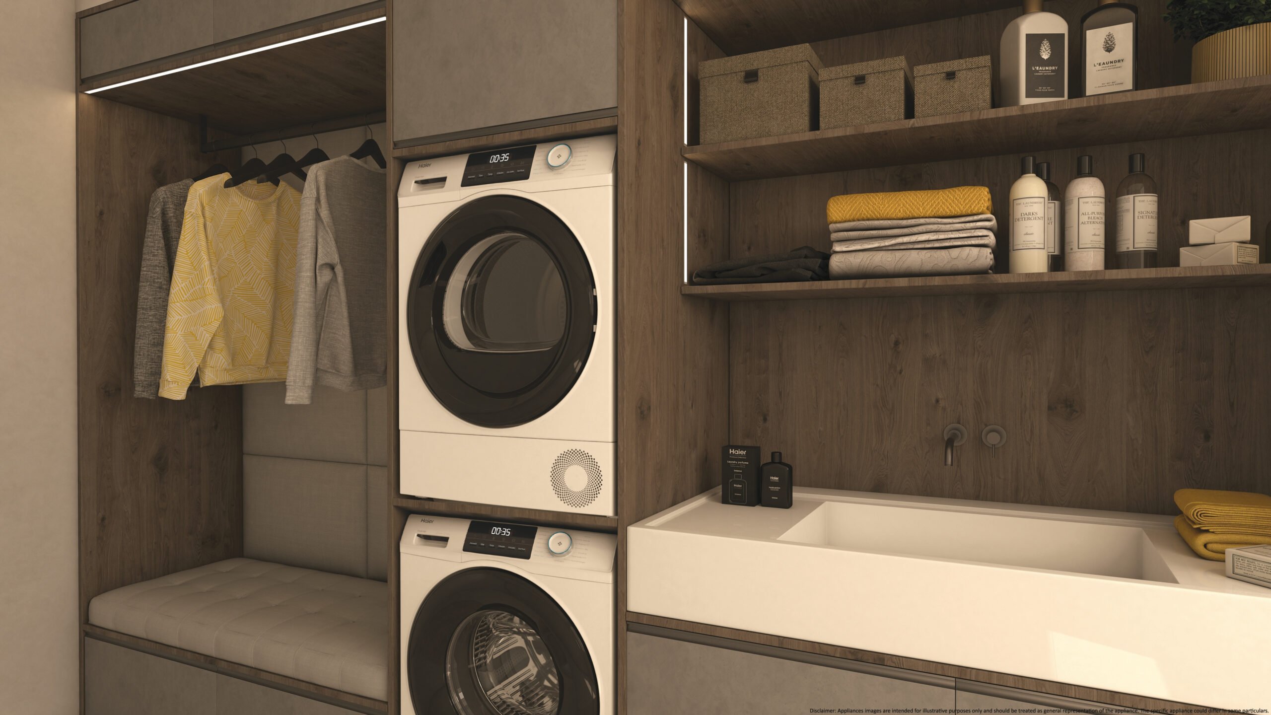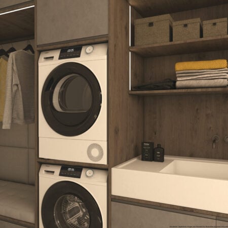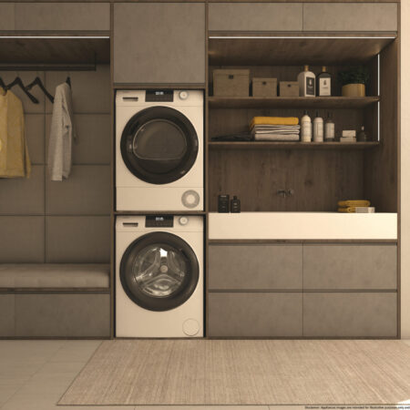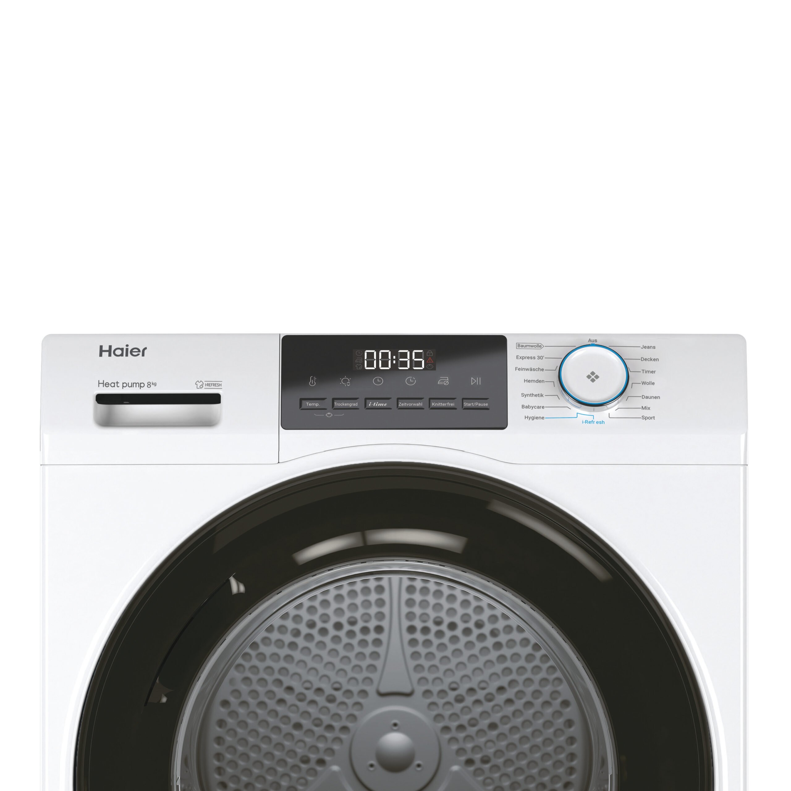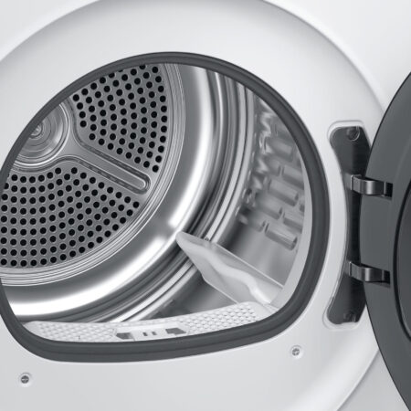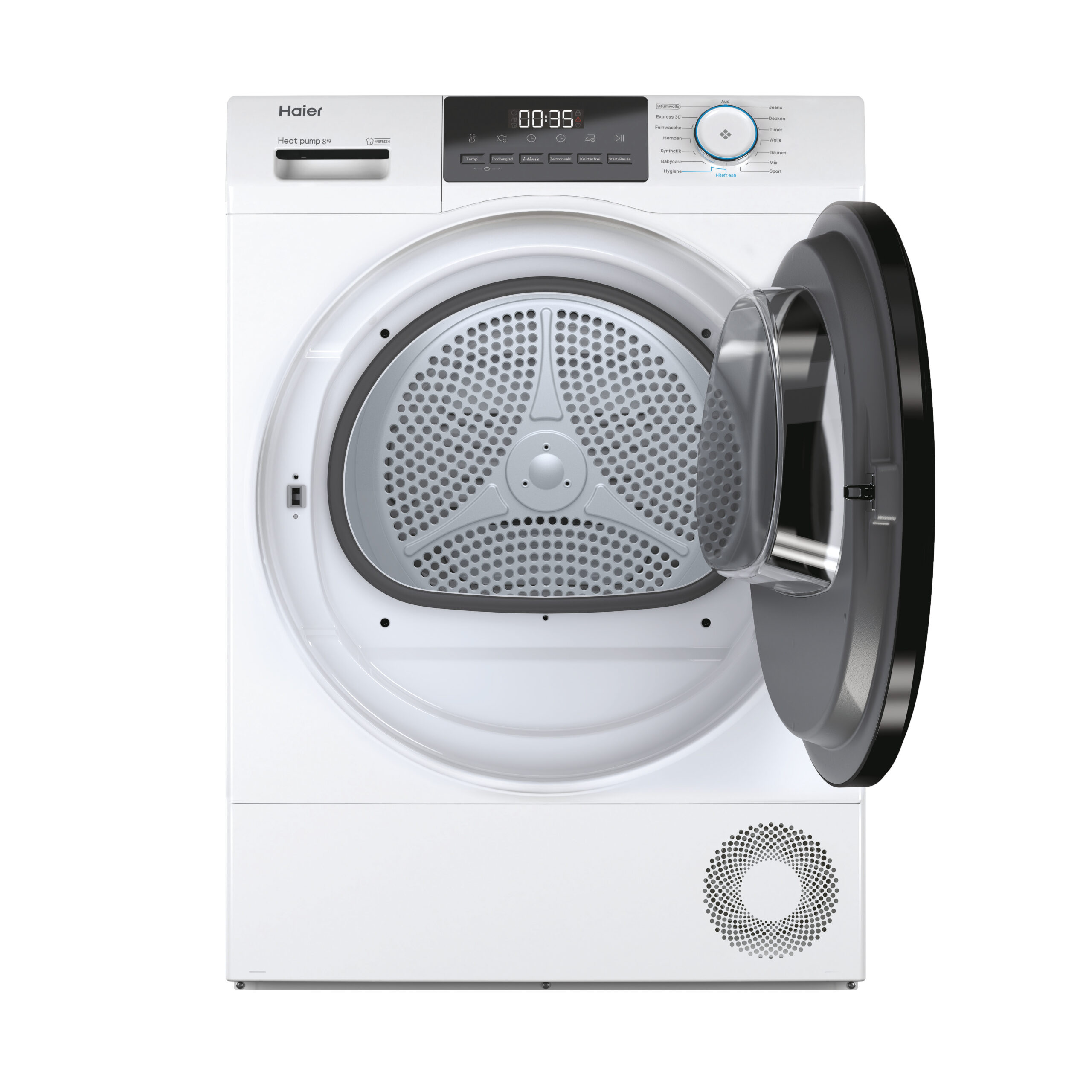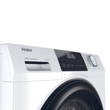 HaierHaier HD80-E929E-DE, Vrijstaand, Voorlader, Warmtepomp, Wit, Knoppen, Draaiknop, Zwart