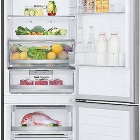 Houd je voedsel zo lang mogelijk vers in de ruime LG GBB72PZEXN koelvriescombinatie met een inhoud van 384 liter. Dankzij LG zijn NatureFresh koeltechniek, met onder andere Door Cooling, FRESHBalancer en FRESHConverter, geniet je langer van de versheid van je etenswaren. Met Door Cooling wordt je koelkast zowel aan de voor- als achterzijde gekoeld. De koelkast is voorzien van een speciale FRESHConverter- en FRESHBalancer-lade die zorgen voor optimale luchtvochtigheid. Je stelt de temperatuur van deze lade in op basis van de inhoud: vlees, vis of groente voor maximale versheid. Dankzij de Linear Inverter Compressor is de GBB72PZEXN ook nog eens stil met een geluidsniveau van 36 dB