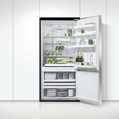 Fisher & Paykel RF522BRXFDU5. Totale nettocapaciteit: 469 l. Deurscharnieren: Rechts. Klimaatklasse: T, Geluidsniveau: 43 dB. Nettocapaciteit koelkast: 351 l, Koelkast binnenverlichting, Aantal planken koelkast: 4, Aantal groente lades: 2. Nettocapaciteit vriezer: 118 l, Vriescapaciteit: 9 kg/24u, No Frost (vriezer). Jaarlijks energieverbruik: 381 kWu. Kleur van het product: Zilver