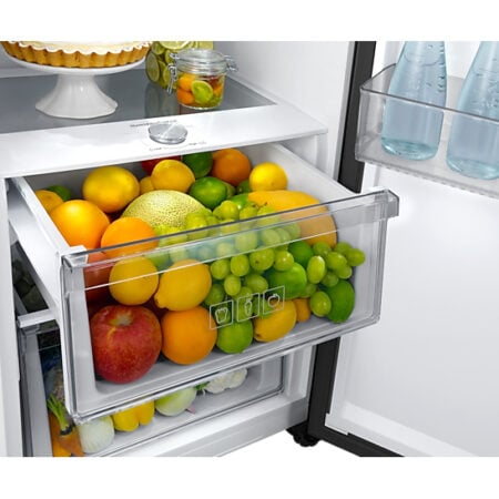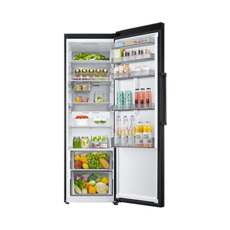 Samsung RR39C7EC5B1. Nettocapaciteit koelkast: 387 l, No Frost system, Klimaatklasse: SN-ST, Geluidsniveau: 39 dB. Aantal planken koelkast: 5, Aantal groente lades: 2. Soort lamp: LED. Jaarlijks energieverbruik: 120 kWu, Energie-efficiëntieklasse: E. Gewicht: 69 kg. Kleur van het product: Grafiet