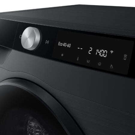 Samsung WD90DG6G94BB. Type lader: Voorbelading, Apparaatplaatsing: Vrijstaand, Kleur van het product: Zwart. Droogcapciteit: 5 kg, Maximale centrifugesnelheid: 1400 RPM, Centrifuge-droger klasse: B. Snoerlengte: 1,5 m. Energie-efficiëntieklasse (wassen): A, Energie-efficiëntieklasse (wassen en drogen): E, Water verbruik wassen: 50 l. Samsung-technologieën (kledingzorg): AI-besturing, AI EcoBubble, AI Energy Mode, AI Wash, Air Wash, Digitale omvormermotor, Super Speed…