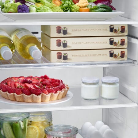 Maak efficiënt gebruik van je koelkastruimte met het multifunctionele Rack & Shelf™-systeem. Het brede ontwerp is niet alleen geschikt voor gewone wijnflessen, maar ook voor grotere, zoals champagneflessen. De platte vorm maakt het rek veelzijdig, want je kunt er ook andere producten op kwijt, zoals pizza’s en eieren.