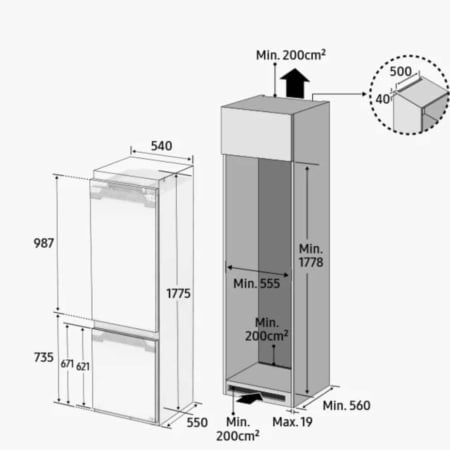SpaceMax™-technologie zorgt voor hyperefficiënte isolatie, waardoor de wanden veel dunner zijn. Je hebt dus meer ruimte, zonder dat de koelkast uitsteekt ten opzichte van je aanrecht.