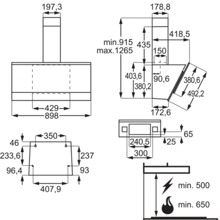 • Afzuigkracht bij recirculatie (intensief/hoog/laag): 425/310/200 m³/h