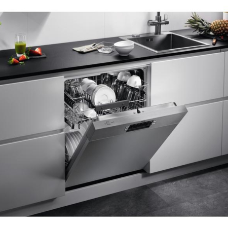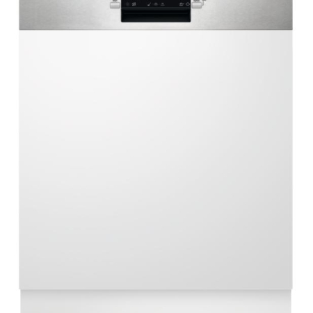 AEG FES5368XZM. Apparaatplaatsing: Semi-ingebouwd, Productafmeting: Volledige grootte (60 cm), Kleur bedieningspaneel: Roestvrijstaal. Aantal couverts: 13 couverts, Geluidsemissieklasse: B, Geluidsniveau: 42 dB. Energie-efficiëntieklasse: D, Waterconsumptie per cyclus: 9,9 l, Energieverbruik per 100 cycli: 84 kWu. Breedte: 596 mm, Diepte: 575 mm, Hoogte: 818 mm