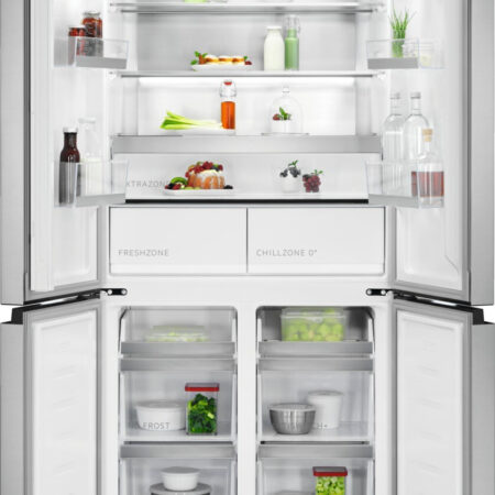 AEG RMB952D6VU. Apparaatplaatsing: Vrijstaand, Productontwerp: Frans deur, Kleur van het product: Roestvrijstaal. Klimaatklasse: SN-T, Geluidsemissieklasse: C, Geluidsniveau: 39 dB. Soort lamp: LED. Nettocapaciteit vriezer: 81 l, Vriezer positie: Onder, Bewaartijd bij stroomuitval: 11 uur. Snoerlengte: 2 m