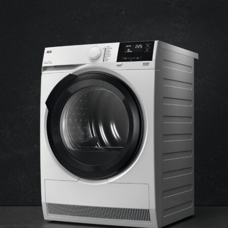AEG Series 7000 TR718L4B, Vrijstaand, Voorbelading, Warmtepomp, Wit, Knoppen, Draaiknop, Touch, Rechts