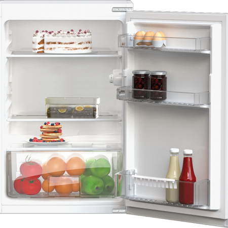 Beko B1803N. Nettocapaciteit koelkast: 126 l, Klimaatklasse: SN-T, Geluidsniveau: 28 dB. Aantal planken koelkast: 3, Aantal groente lades: 1. Soort lamp: LED. Deurscharnieren: Rechts. Jaarlijks energieverbruik: 114 kWu, Energie-efficiëntieklasse: F. Gewicht: 27,5 kg. Kleur van het product: Wit