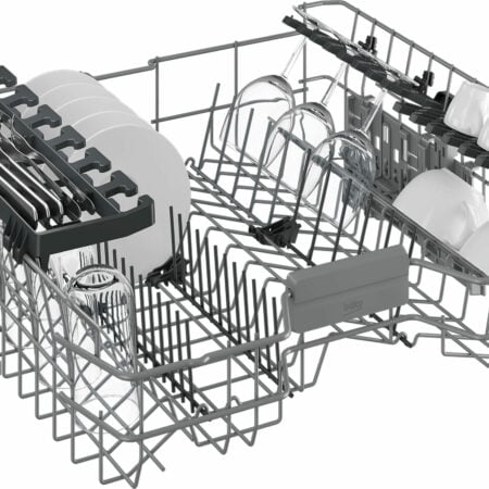 Beko b300 BDIN38440. Apparaatplaatsing: Volledig ingebouwd, Productafmeting: Volledige grootte (60 cm), Kleur bedieningspaneel: Zwart. Aantal couverts: 14 couverts, Geluidsemissieklasse: B, Geluidsniveau: 44 dB. Voetenverstelling: 10 cm. Energie-efficiëntieklasse: C, Waterconsumptie per cyclus: 9,5 l, Energieverbruik per 100 cycli: 75 kWu. Breedte: 598 mm, Diepte: 550 mm, Hoogte: 818 mm