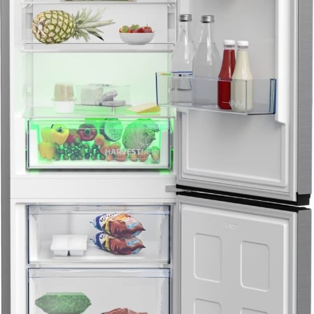 Beko B3RCNE364HXB. Deurscharnieren: Rechts. Klimaatklasse: SN-T, Geluidsniveau: 37 dB. Nettocapaciteit koelkast: 210 l, No Frost (koelkast), Koelkast binnenverlichting, Aantal planken koelkast: 4, Aantal groente lades: 1. Nettocapaciteit vriezer: 106 l, Vriescapaciteit: 6 kg/24u, No Frost (vriezer). Vers zone compartiment. Energie-efficiëntieklasse: E, Jaarlijks energieverbruik: 247,11 kWu. Kleur van het product: Grijs