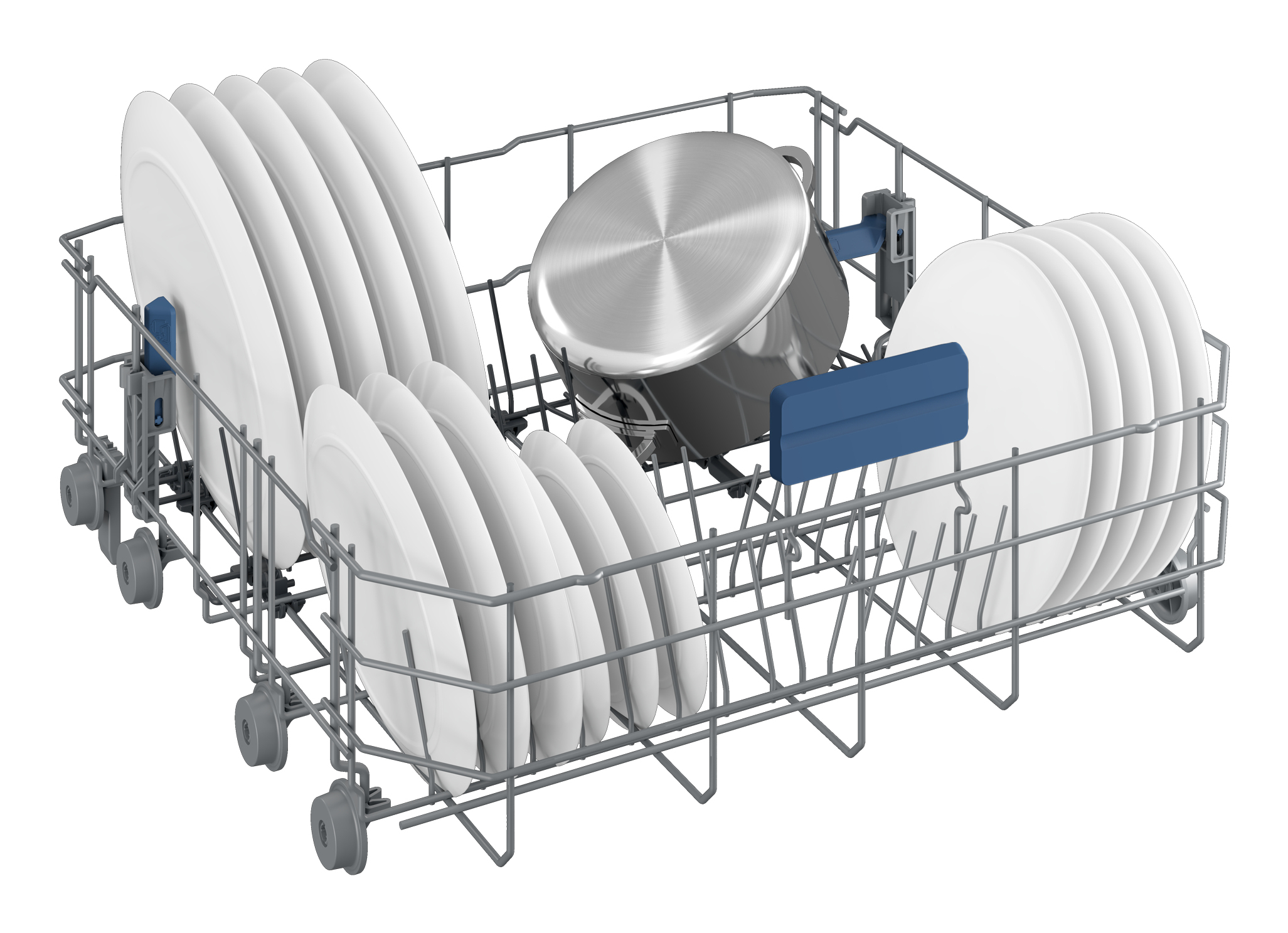 Bij het koken gebruik je vaak potten en pannen van verschillende grootte en je hebt een vaatwasmachine nodig die dat begrijpt. Met de eenvoudig inklapbare steunen kun je gemakkelijk ruimte maken voor al die grote potten en pannen. De tijd dat je grote pannen met de hand moest afwassen is voorbij, en gelukkig maar!
