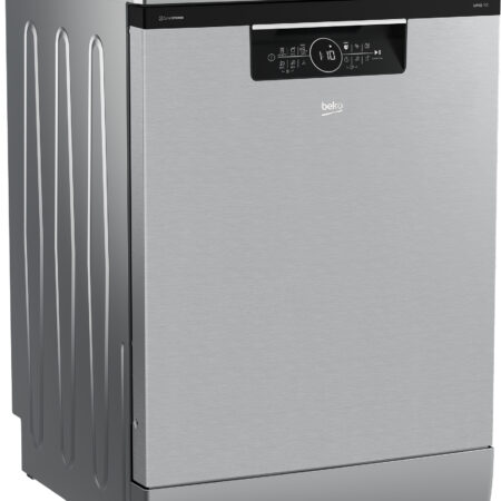 Beko BDFN36560XC. Apparaatplaatsing: Vrijstaand, Productafmeting: Volledige grootte (60 cm), Deurkleur: Grijs. Aantal couverts: 15 couverts, Geluidsemissieklasse: B, Geluidsniveau: 42 dB. Energie-efficiëntieklasse: A, Waterconsumptie per cyclus: 9,9 l, Energieverbruik per 100 cycli: 55 kWu. Breedte: 598 mm, Diepte: 600 mm, Hoogte: 850 mm. Breedte verpakking: 644 mm, Diepte verpakking: 661 mm, Hoogte verpakking: 889 mm