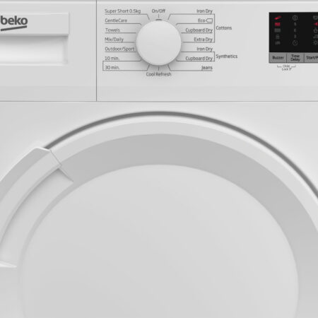 Beko DTLCE90051W, Vrijstaand, Voorbelading, Condensatie, Wit, Knoppen, Draaiknop, Rechts