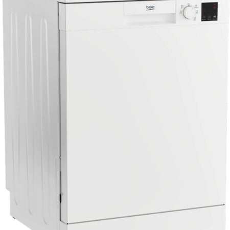 Beko DVN05320W. Apparaatplaatsing: Vrijstaand, Productafmeting: Volledige grootte (60 cm), Deurkleur: Wit. Aantal couverts: 13 couverts, Geluidsemissieklasse: C, Geluidsniveau: 49 dB. Energie-efficiëntieklasse: E, Waterconsumptie per cyclus: 12,9 l, Energieverbruik per 100 cycli: 94 kWu. Breedte: 598 mm, Diepte: 600 mm, Hoogte: 850 mm. Droogklasse: A, Jaarlijks energieverbruik: 262 kWu, Jaarlijks waterverbruik: 3612 l