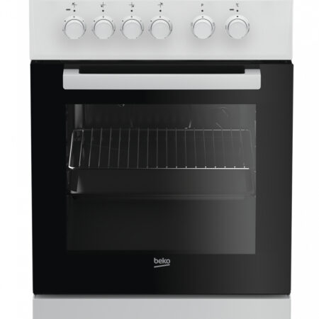 Beko FSS56000GW. Type product: Vrijstaand fornuis, Kleur van het product: Wit, Soort bediening: Draaiknop. Type kookplaat: Gesealde plaat, Aantal branders/kookzones: 4 zone(s), Aantal elektronische kook zones: 4 zone(s). Grootte oven: Middelmaat, Voedingsbron oven: Electrisch, Netto capaciteit oven: 60 l. Energie-efficiëntieklasse: A, Energieverbruik (conventioneel): 0,85 kWu, Aangesloten lading (elektrisch): 7400 W. Breedte: 500 mm, Diepte: 600 mm, Hoogte: 850 mm