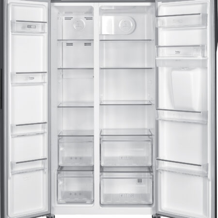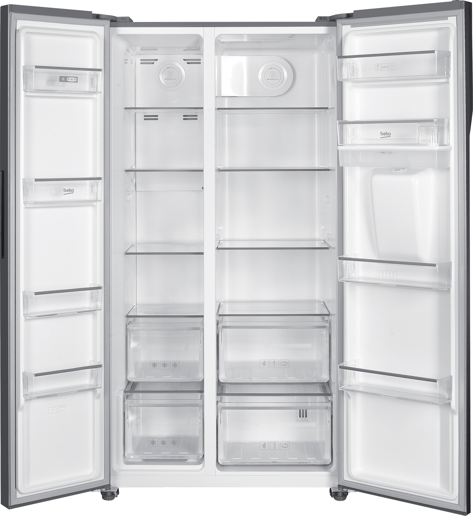 Beko GNO5322WDXPN. Apparaatplaatsing: Vrijstaand, Productontwerp: Amerikaanse deur, Kleur van het product: Grijs. Totale nettocapaciteit: 532 l, Geluidsemissieklasse: C, Geluidsniveau: 39 dB. Nettocapaciteit koelkast: 344 l. Nettocapaciteit vriezer: 185 l, Vriezer positie: Ernaast, Vriescapaciteit: 14 kg/24u. Energie-efficiëntieklasse: E, Jaarlijks energieverbruik: 312 kWu, Energie-efficiëntieschaal: A tot G