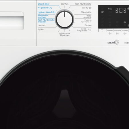 Beko WDW75141 Steam1. Type lader: Voorbelading, Apparaatplaatsing: Vrijstaand, Kleur van het product: Wit. Droogcapciteit: 4 kg, Maximale centrifugesnelheid: 1400 RPM, Centrifuge-droger klasse: B. Energie-efficiëntieklasse (wassen): D, Energie-efficiëntieklasse (wassen en drogen): D, Water verbruik wassen: 34 l. Diepte: 500 mm, Breedte: 600 mm, Hoogte: 840 mm