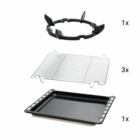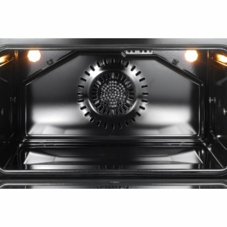 Onder het kookgedeelte bevindt zich een ruime oven met een inhoud van 87 liter. Deze oven heeft 9 functies en is voorzien van een energieklasse A label. Praktisch is de draaispit, de twee ovenroosters welke standaard meegeleverd worden en de telescopische geleiders (eenvoudig in en uitschuiven).