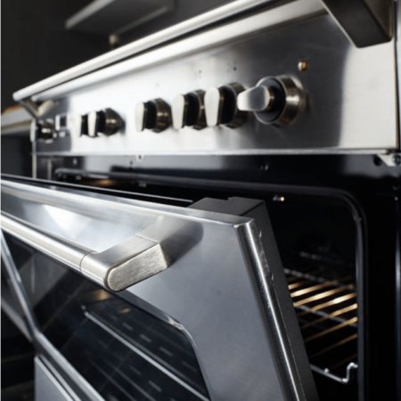 Dit fornuis heeft een 5-pits kookgedeelte voorzien van messing branders. Alle branders hebben thermokoppel vlambeveiliging (geen vlam = geen gas) en beschikken over automatische vonkontsteking. Bij het opendraaien van de knop wordt de vlam automatisch ontstoken.