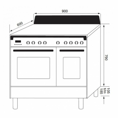 90cm, 70 + 45 liter, 50ºC – 250ºC, 11.1kW, 2x ø 160mm 1400W, 2x ø 200mm 2000W