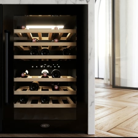 De MLWC82 beschikt over een uniek vernieuwd scharnier om bij een greeploze keuken te zorgen dat het meubelpaneel niet meer de greeplijst raakt bij het openen van de deur. Daarnaast zit er een verdiept, makkelijk afneembaar, ventilatierooster op deze Boretti onderbouw wijnkoelkast. Hierdoor kan de keukenplint doorlopen op de gebruikelijke diepte.