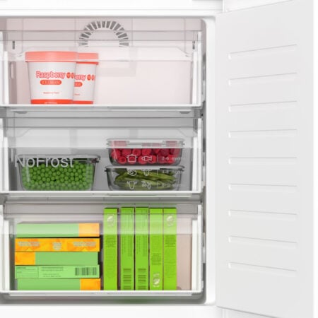 Bosch KIN86ADD0. Totale nettocapaciteit: 260 l. Deurscharnieren: Rechts. Klimaatklasse: SN-ST, Geluidsniveau: 35 dB. Nettocapaciteit koelkast: 184 l, Koelkast binnenverlichting, Aantal planken koelkast: 3, Aantal groente lades: 1. Nettocapaciteit vriezer: 76 l, Vriescapaciteit: 8 kg/24u, No Frost (vriezer). Energie-efficiëntieklasse: D, Jaarlijks energieverbruik: 186 kWu. Kleur van het product: Wit