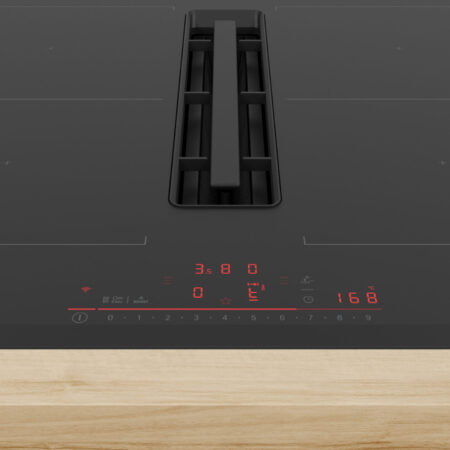 Bosch Serie 6 PVQ731H26E. Kleur van het product: Zwart, Apparaatplaatsing: Ingebouwd, Breedte kookplaat: 71 cm. Soort bediening: Touch, Controle positie: Front / Top front, Type timer: Digitaal. Afzuigmethode: Afvoerend/recirculerend, Maximale afzuigcapaciteit: 500 m³/uur, Geluidsniveau ventilatie (max): 69 dB. Aangesloten lading (elektrisch): 7400 W, AC-ingangsspanning: 220-240 V, AC-ingangsfrequentie: 50-60 Hz. Breedte: 710 mm, Diepte: 522 mm, Hoogte: 223 mm
