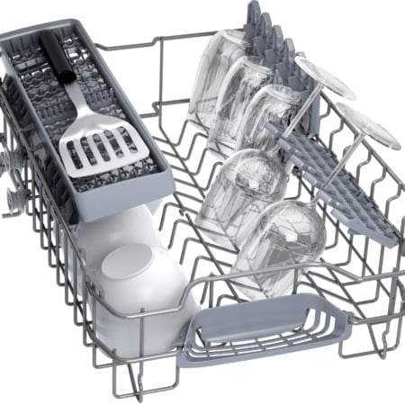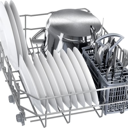 Bosch Serie 2 SPS2HKW58E. Apparaatplaatsing: Vrijstaand, Productafmeting: Slimline (45 cm), Deurkleur: Wit. Aantal couverts: 10 couverts, Geluidsemissieklasse: C, Geluidsniveau: 46 dB. Voetenverstelling: 2 cm, Bedieningsapps ondersteund: Bosch Home Connect. Energie-efficiëntieklasse: E, Waterconsumptie per cyclus: 8,9 l, Energieverbruik per 100 cycli: 76 kWu. Breedte: 450 mm, Diepte: 600 mm, Hoogte: 845 mm