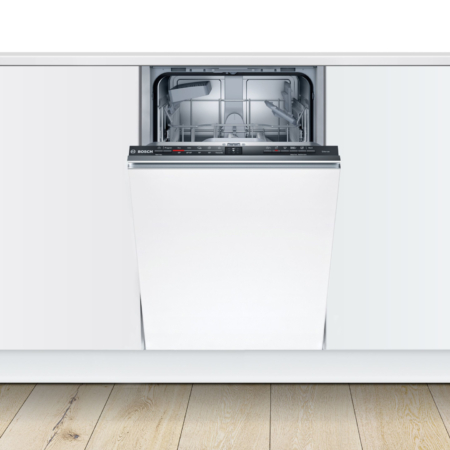 Bosch Serie 2 SPV2HKX41E. Apparaatplaatsing: Volledig ingebouwd, Productafmeting: Slimline (45 cm), Soort bediening: Touch. Aantal couverts: 9 couverts, Geluidsemissieklasse: C, Geluidsniveau: 46 dB. Voetenverstelling: 6 cm. Energie-efficiëntieklasse: E, Waterconsumptie per cyclus: 8,5 l, Energieverbruik per 100 cycli: 70 kWu. Breedte: 448 mm, Diepte: 550 mm, Hoogte: 815 mm