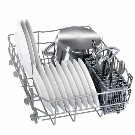 Bosch Serie 2 SPV2IKX10E. Apparaatplaatsing: Volledig ingebouwd, Productafmeting: Slimline (45 cm), Kleur bedieningspaneel: Zwart. Aantal couverts: 9 couverts, Geluidsemissieklasse: C, Geluidsniveau: 48 dB. Voetenverstelling: 6 cm, Bedieningsapps ondersteund: Siemens Home Connect. Energie-efficiëntieklasse: F, Waterconsumptie per cyclus: 9,5 l, Energieverbruik per 100 cycli: 78 kWu. Breedte: 448 mm, Diepte: 550 mm, Hoogte: 815 mm