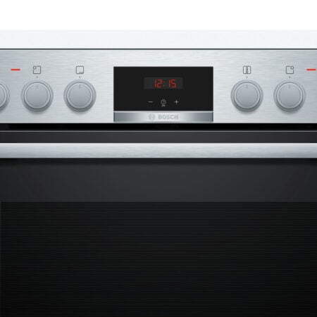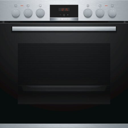 Bosch Serie 4 HEA513BS2. Grootte oven: Middelmaat, Soort oven: Elektrische oven, Totale binnen capaciteit (ovens): 71 l. Apparaatplaatsing: Ingebouwd, Kleur van het product: Roestvrijstaal, Soort bediening: Draaiknop, Touch. Soort klok: Elektronisch. Energie-efficiëntieklasse: A, Energieverbruik (conventioneel): 0,97 kWu, Energieverbruik (geforceerde convectie): 0,81 kWu. Soort lamp: Halogeen