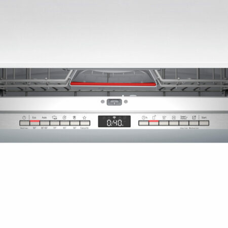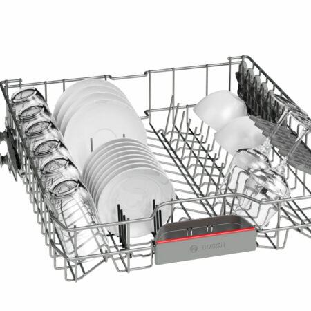Bosch Serie 4 SMV4HVX31E. Apparaatplaatsing: Volledig ingebouwd, Productafmeting: Volledige grootte (60 cm), Kleur bedieningspaneel: Grijs. Aantal couverts: 13 couverts, Geluidsemissieklasse: C, Geluidsniveau: 46 dB. Voetenverstelling: 6 cm. Energie-efficiëntieklasse: E, Waterconsumptie per cyclus: 9,5 l, Energieverbruik per 100 cycli: 94 kWu. Breedte: 598 mm, Diepte: 550 mm, Hoogte: 815 mm