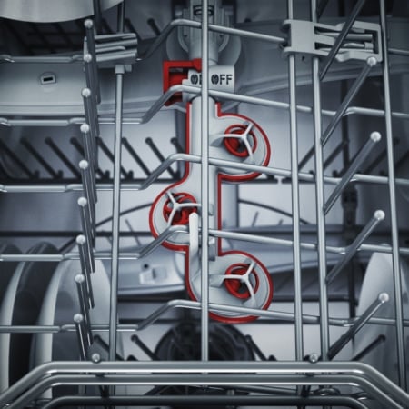 Nooit meer vastgekoekte etensresten: dankzij de Extra Clean Zone wordt alle vaat in je bovenkorf grondig gereinigd. Drie roterende watersproeiers zorgen ervoor dat je vaatwerk extra geweekt wordt. Wat ze niet doen? Meer schoonmaakmiddel gebruiken of op hogere temperaturen wassen. Druk op de knop om de functie te activeren en laat je vaatwasser het vuile werk opknappen.