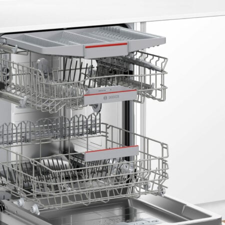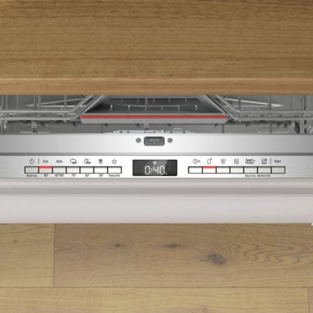 Bosch Serie 6 SMV6YCX02E. Apparaatplaatsing: Volledig ingebouwd, Productafmeting: Volledige grootte (60 cm), Kleur bedieningspaneel: Roestvrijstaal. Aantal couverts: 14 couverts, Geluidsemissieklasse: B, Geluidsniveau: 44 dB. Voetenverstelling: 6 cm, Bedieningsapps ondersteund: Bosch Home Connect. Energie-efficiëntieklasse: A, Waterconsumptie per cyclus: 9,5 l, Energieverbruik per 100 cycli: 54 kWu. Breedte: 598 mm, Diepte: 550 mm, Hoogte: 815 mm