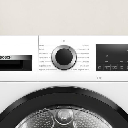 Bosch Serie 6 WQG24509GB, Vrijstaand, Voorbelading, Warmtepomp, Wit, Knoppen, Draaiknop, Rechts