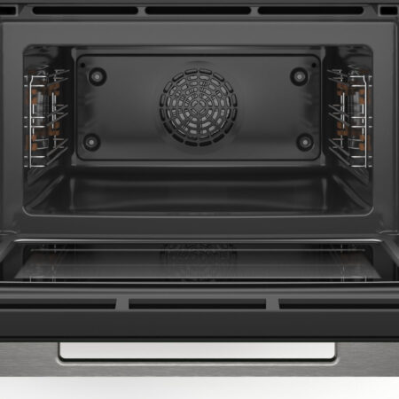 Bosch Serie 8 CMG7241B1. Grootte oven: Klein, Soort oven: Elektrische oven, Totale binnen capaciteit (ovens): 45 l. Apparaatplaatsing: Ingebouwd, Kleur van het product: Zwart, Soort bediening: Touch. Soort klok: Elektronisch. Netbelasting: 3600 W. Aantal lampen: 1 lampen, Soort lamp: LED