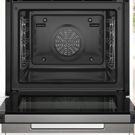 Bosch Serie 8 HBG7741B1. Grootte oven: Middelmaat, Soort oven: Elektrische oven, Totale binnen capaciteit (ovens): 71 l. Apparaatplaatsing: Ingebouwd, Kleur van het product: Zwart, Soort bediening: Touch. Soort klok: Elektronisch. Energie-efficiëntieklasse: A+, Energieverbruik (conventioneel): 0,87 kWu, Energieverbruik (geforceerde convectie): 0,69 kWu. Aantal lampen: 1 lampen, Soort lamp: Halogeen